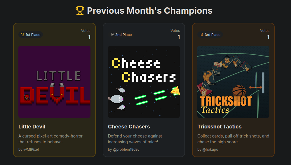 Cheese Chasers got second place in last month's showcase, and I'm very thankful!